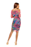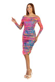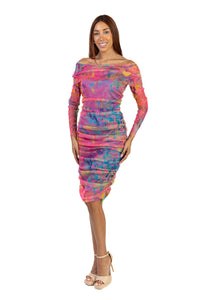 JORDANA Off Shoulder Knee Length Long Sleeve Print Mesh Sheath Dress