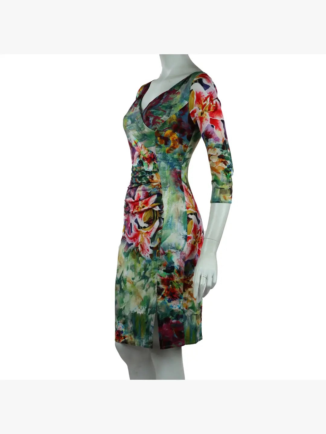 Oahu Crossover Ruched 3/4 Sleeve Knee Length Dress