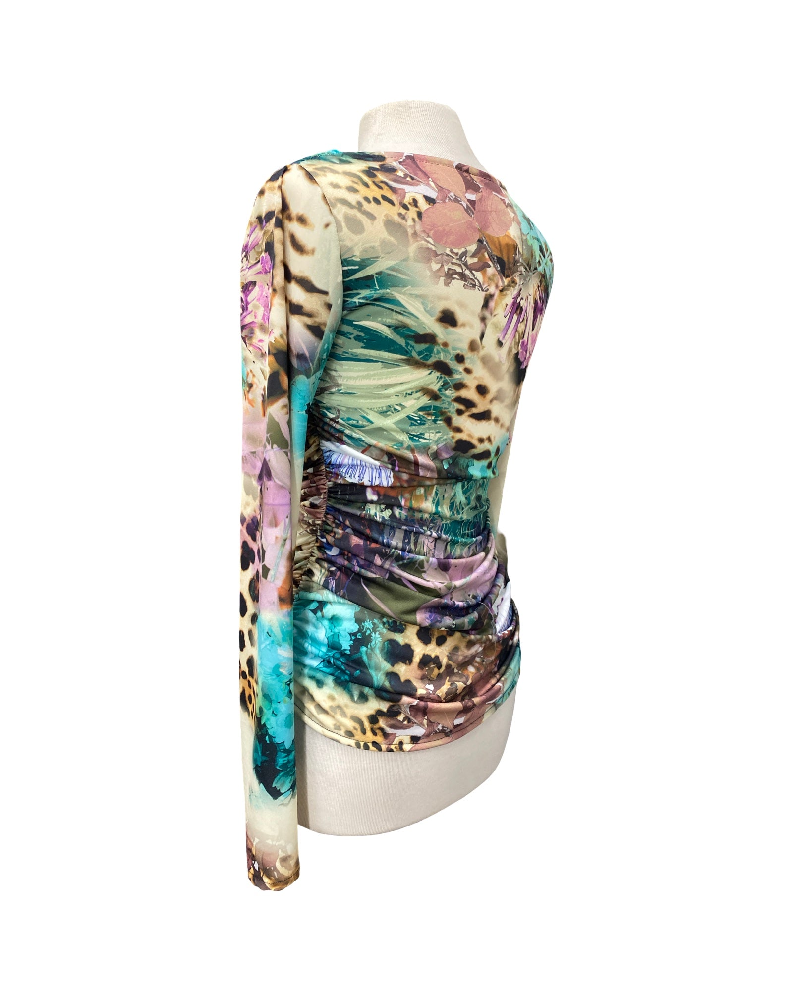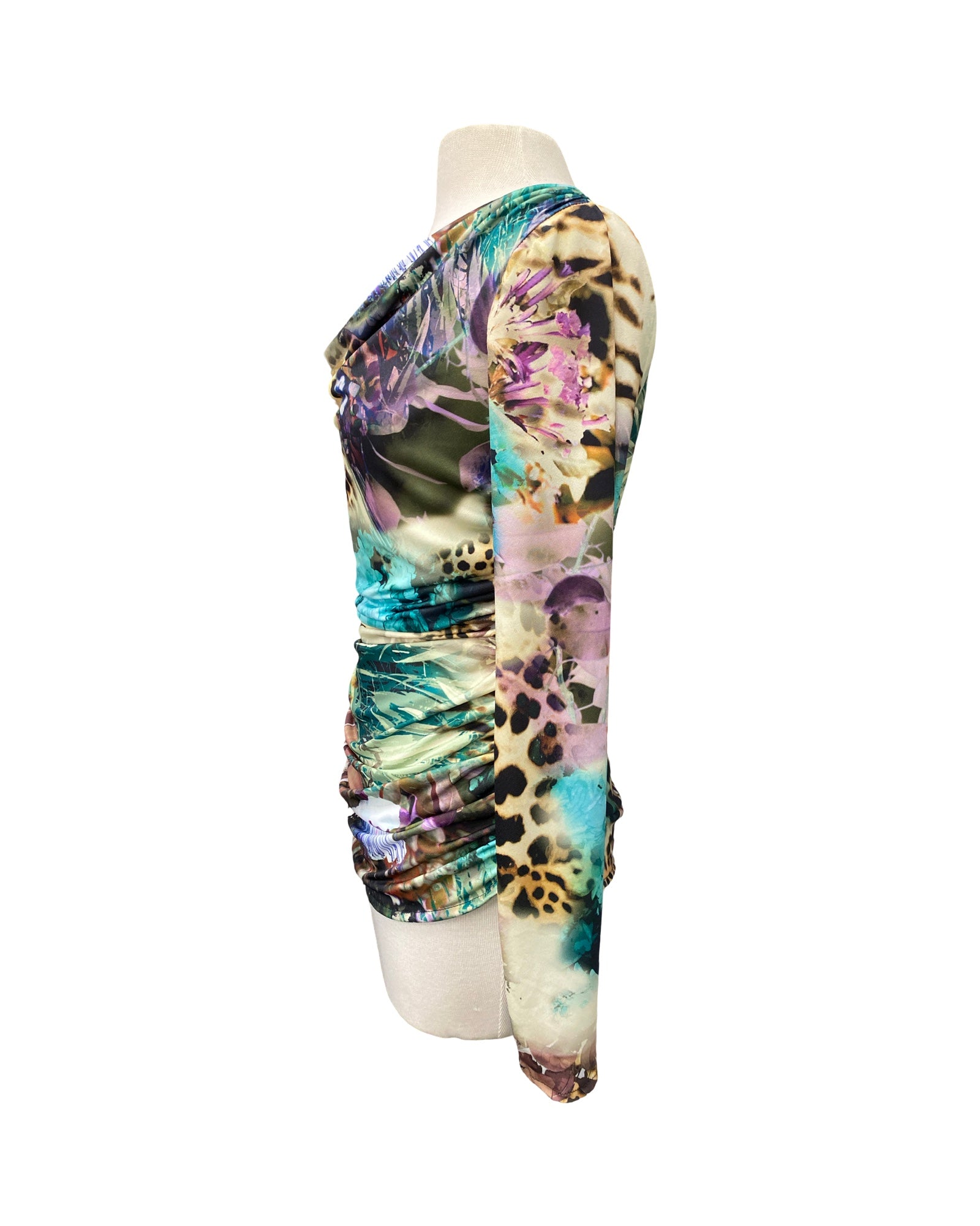 PAOLA Long Sleeves Ruched Side Seams Cowl Neck Jersey Top
