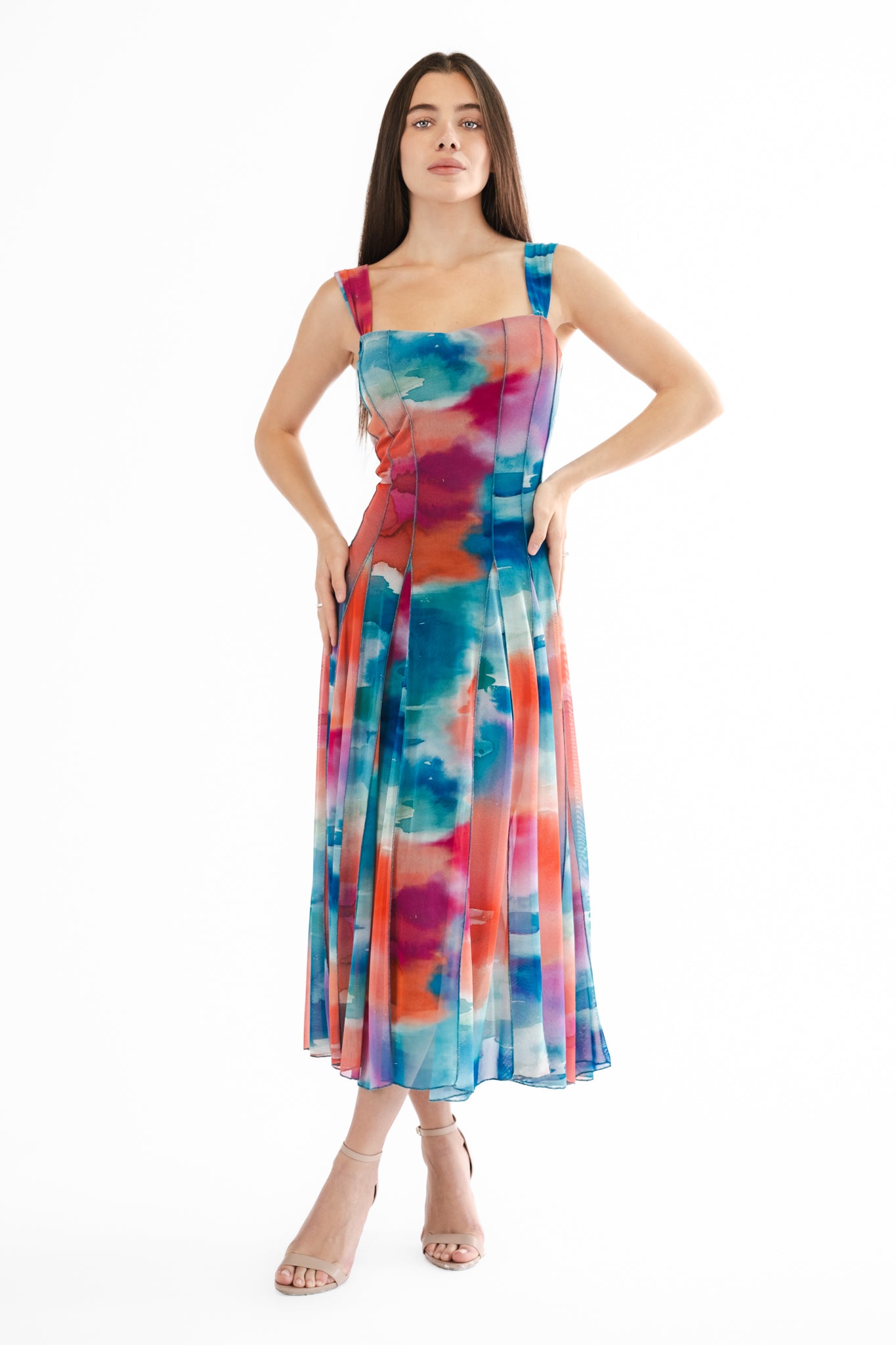 -- -- -- Elana Kattan | GRACE Sleeveless Mid Calf Fit N Flare Mesh Dress