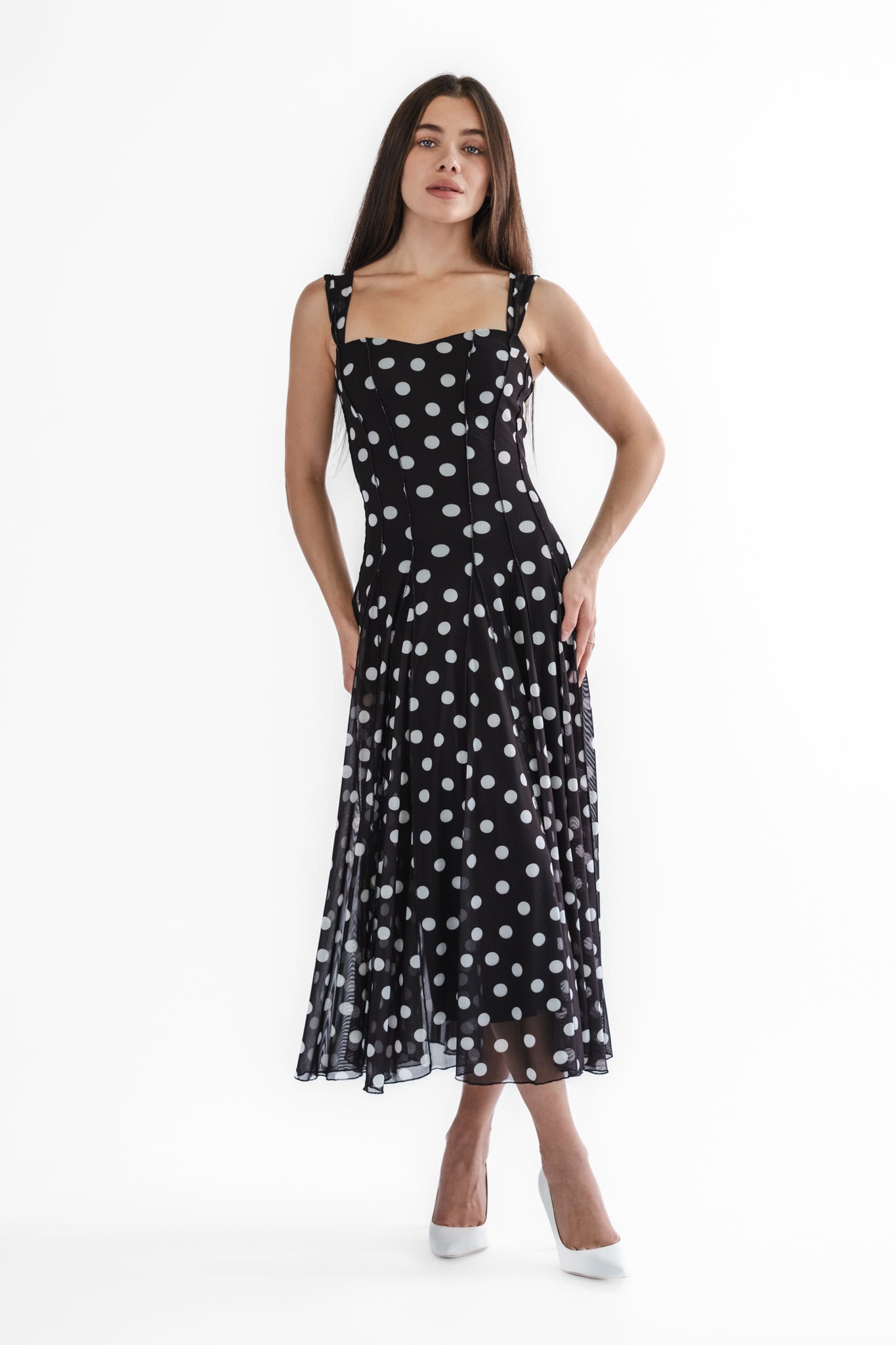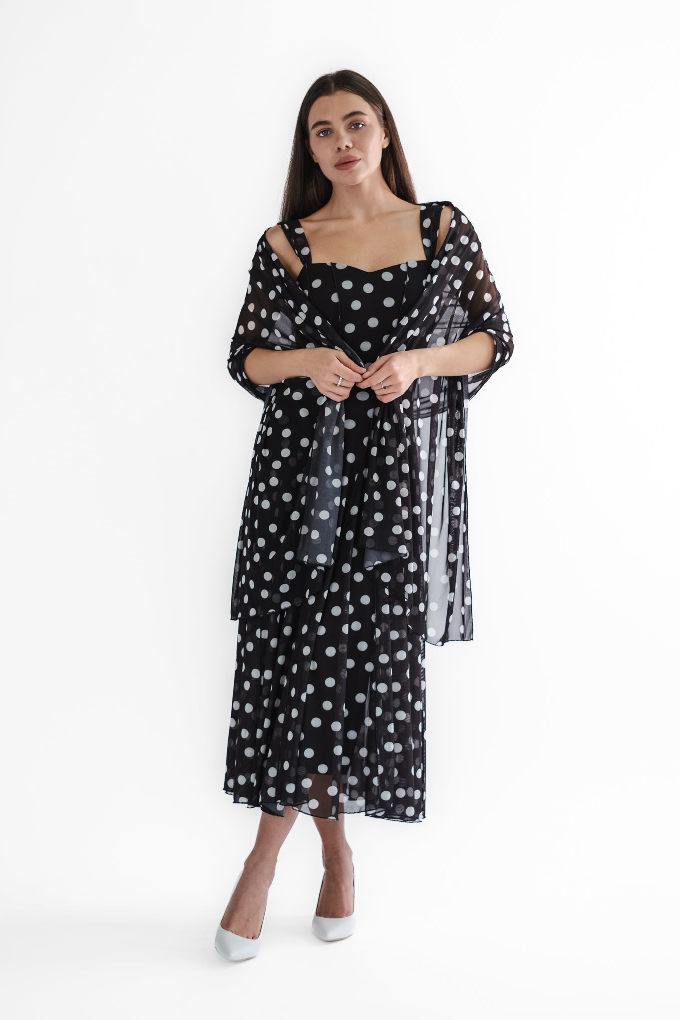 Sweetheart neckline Mid-Length. 48" from shoulder to hem