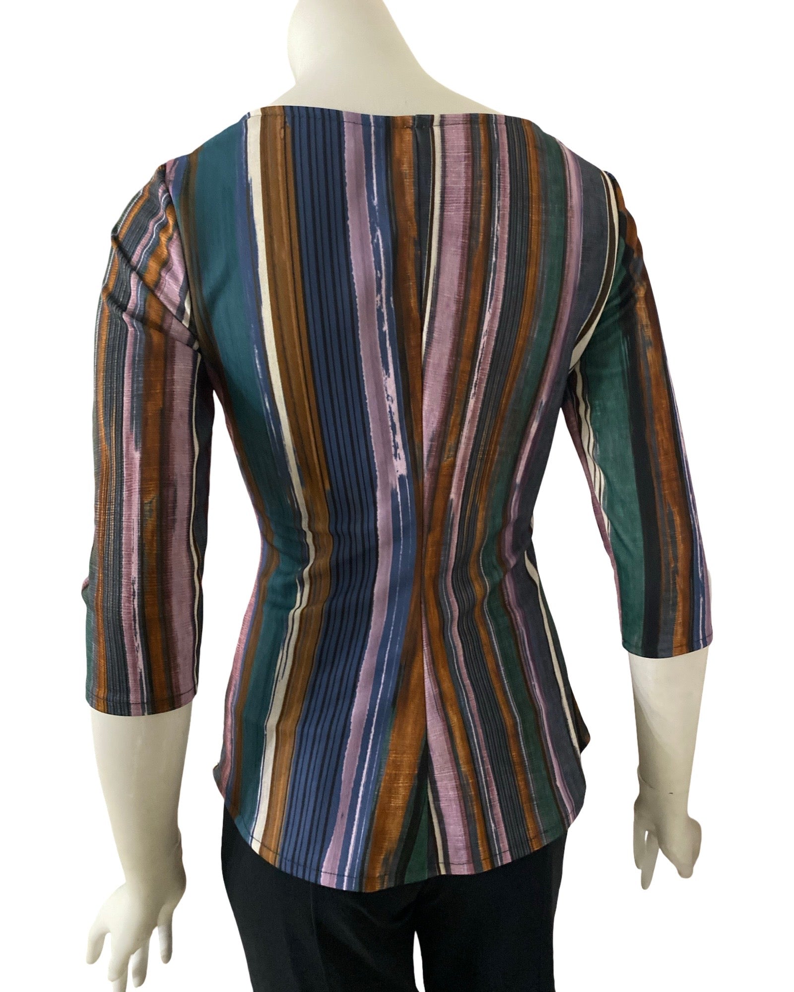 WILLOW Crossover with Pleated Side 3/4 Sleeves Printed Stretch Jersey Top