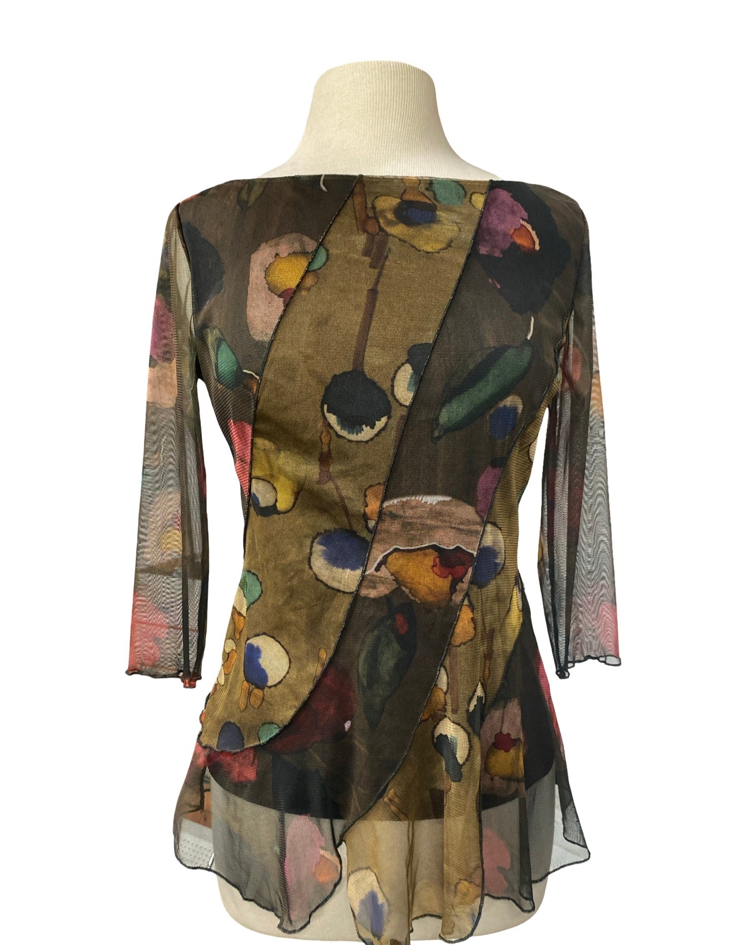 ALMA Diagonal Paneled Top with Scalloped Hem and 3/4 Sleeves