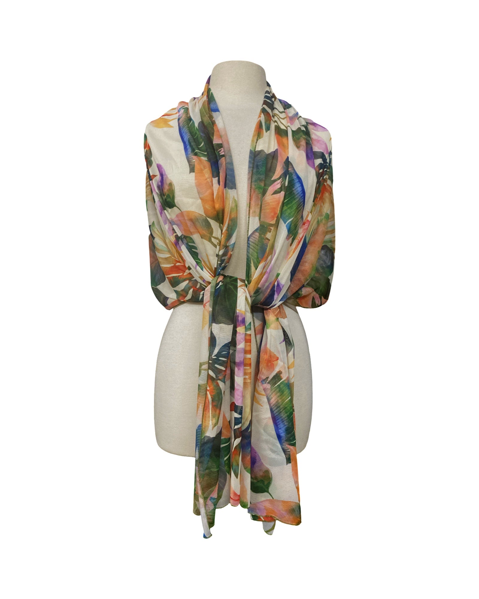 Light, airy, feminine and practical, this printed shawl provides the perfect cover for a sleeveless dress, a strapless gown, a funky tank top. Add a striking accent to a little black dress, or wear with your favorite jeans.