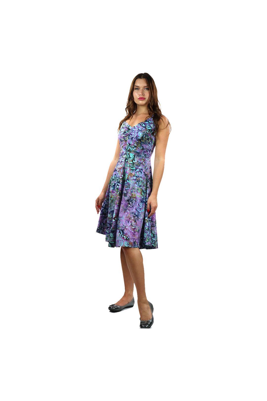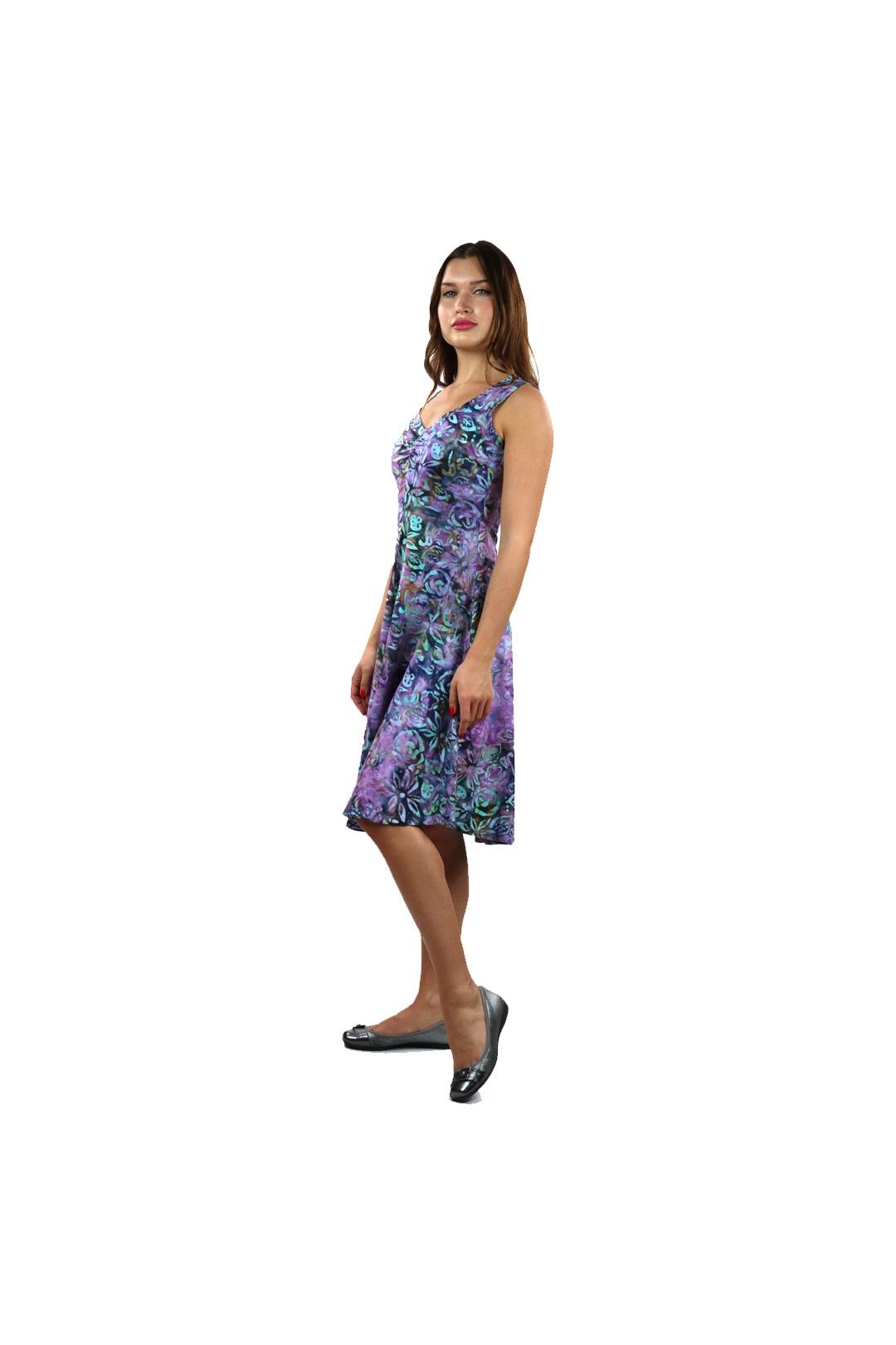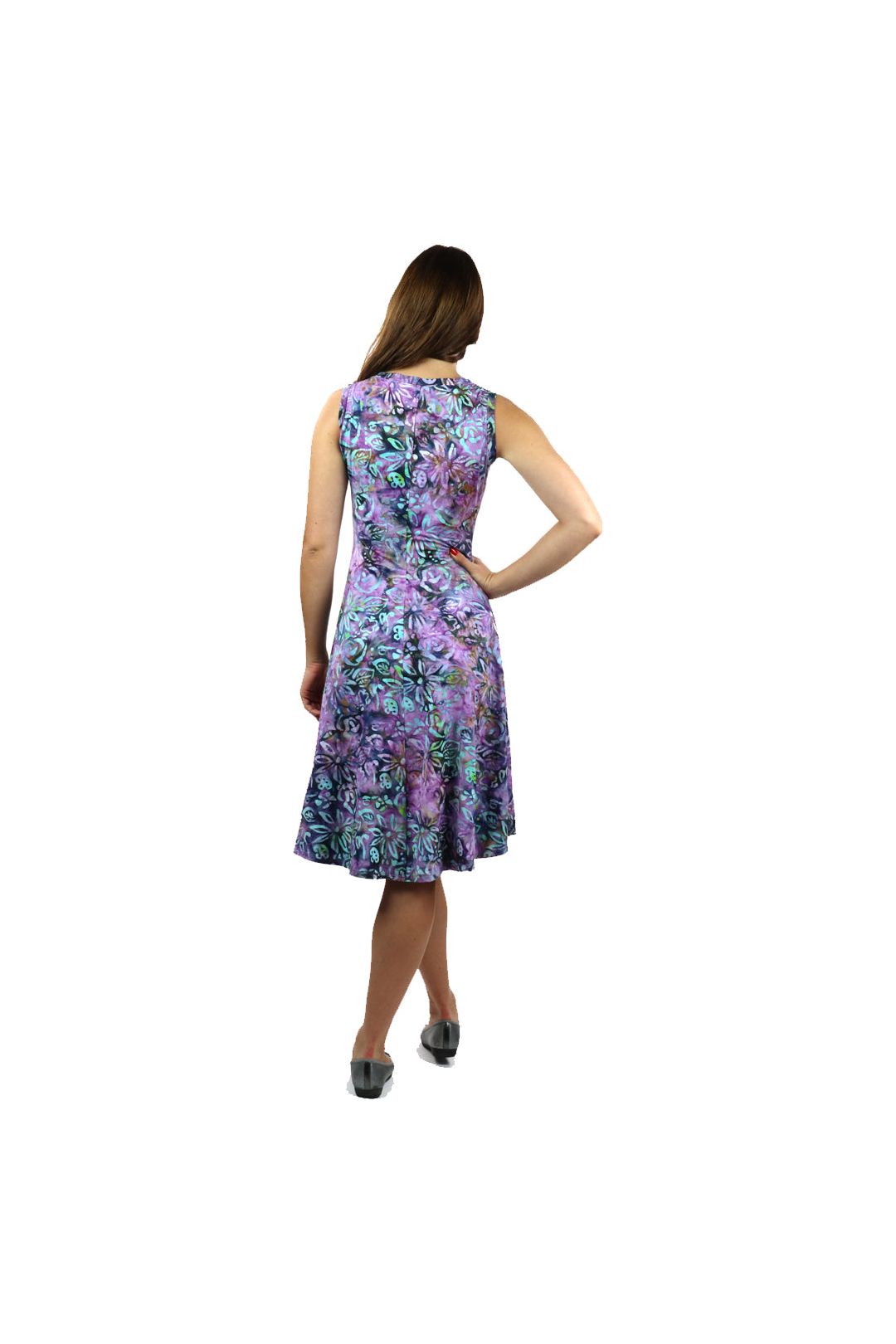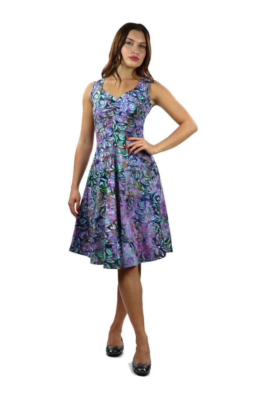 CECILE Batik Sleeveless V-Neck Flared Dress
