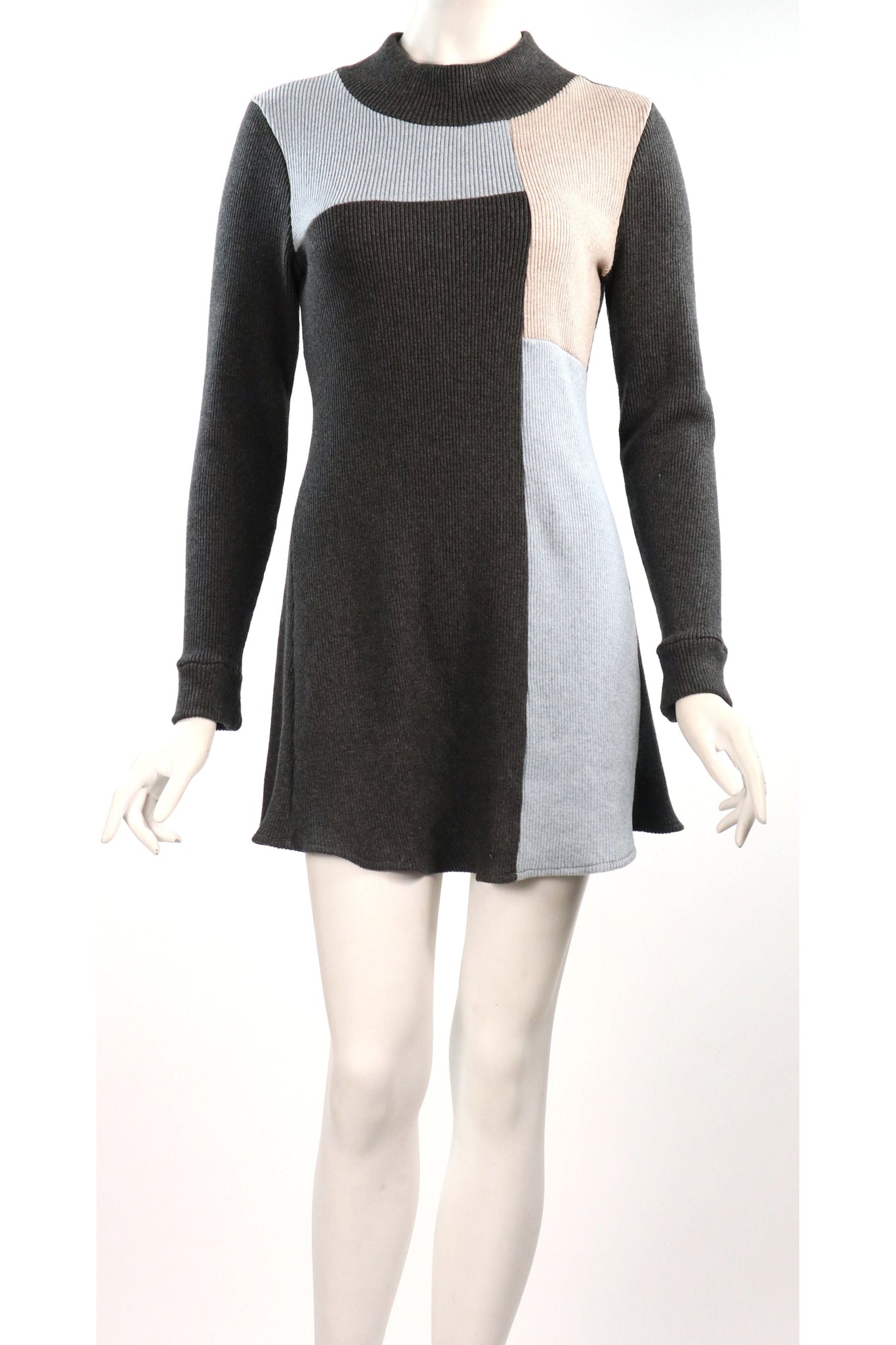 Interesting design of color blocks in charcoal oatmeal and blue