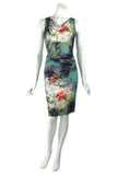CUPID Cowl Neck Sleeveless Ruched Knee Length Print Dress