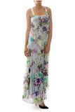 OBELIA Sleeveless Long Dress With Overlay Floral Print Tulle