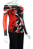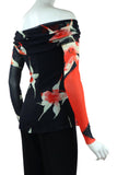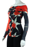 TULIP Draped Neckline Long Sheer Mesh Sleeved Print Top