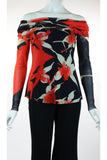 Flattering off shoulder neckline with a dramatic stole-like drape top perfect for any occasion.