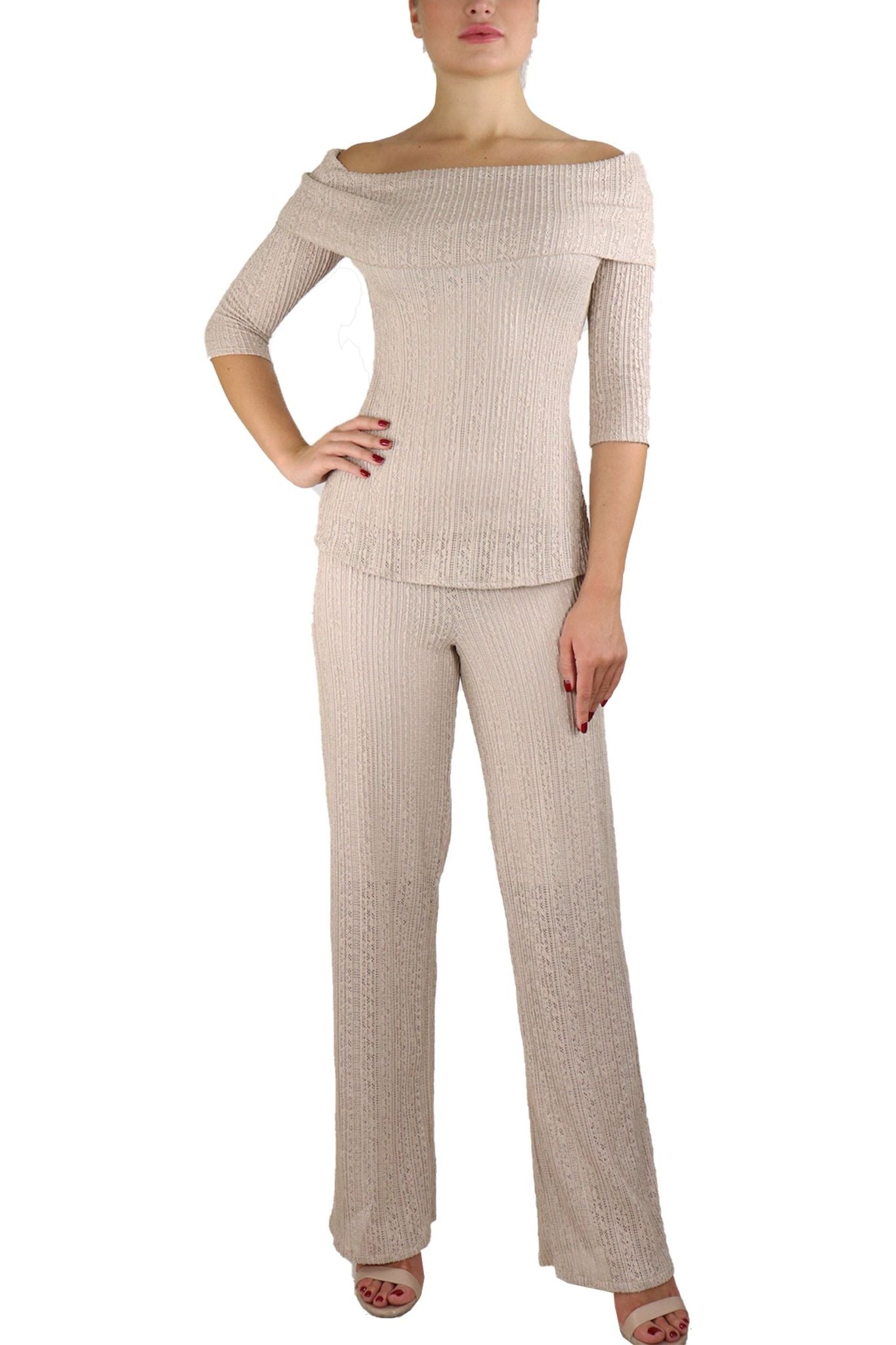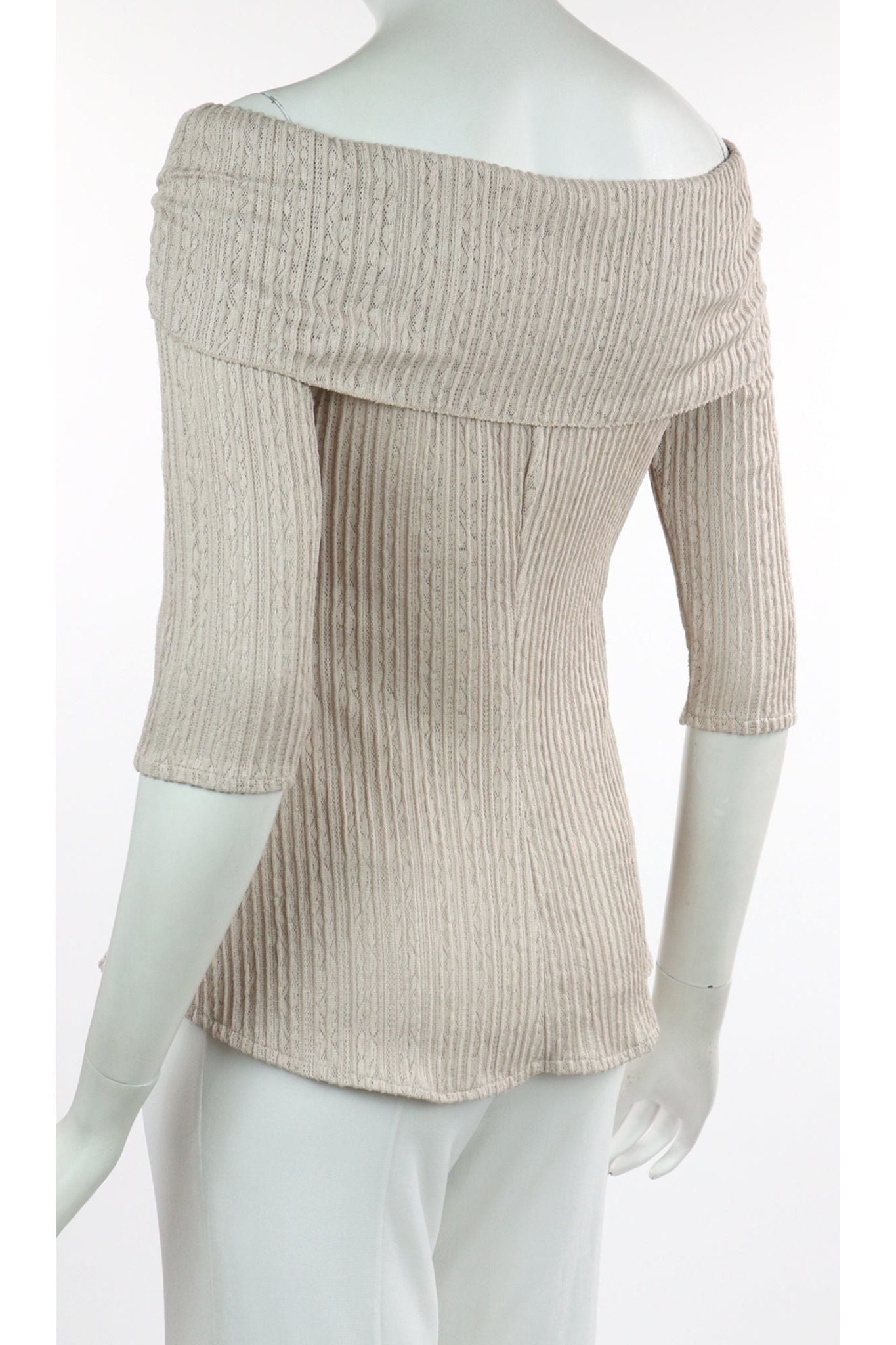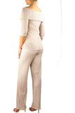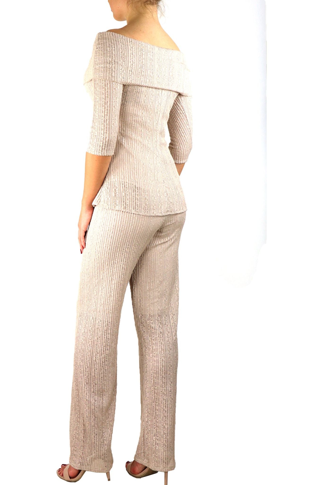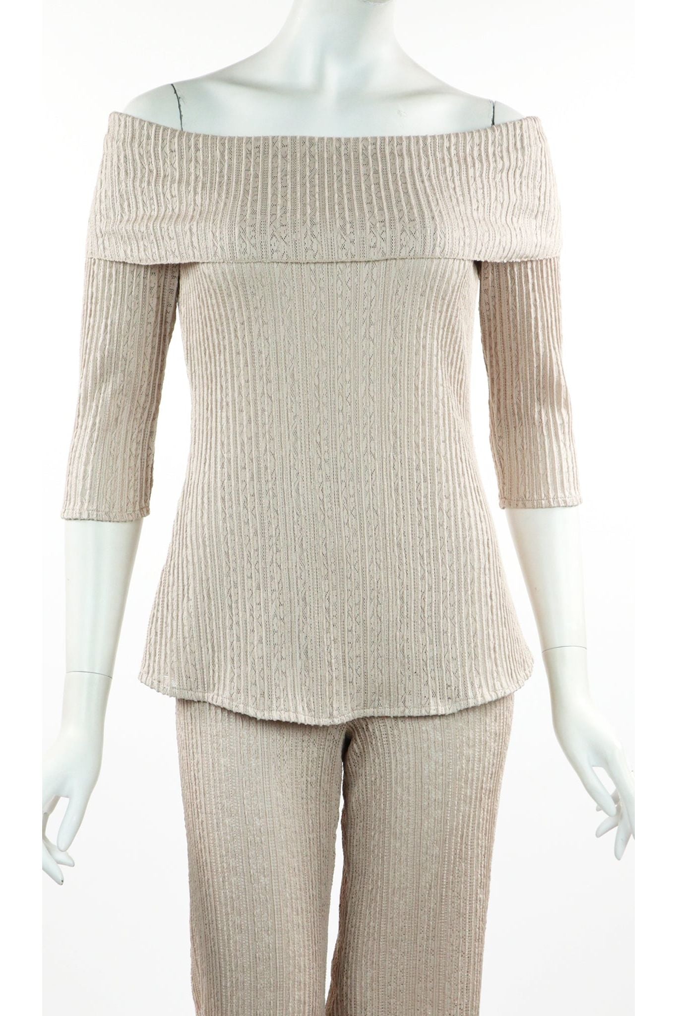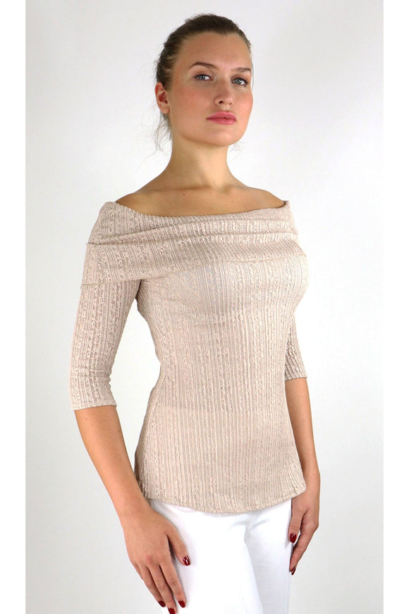 SOPHIA Off-Shoulder Draped Neckline Textured Lace Taupe