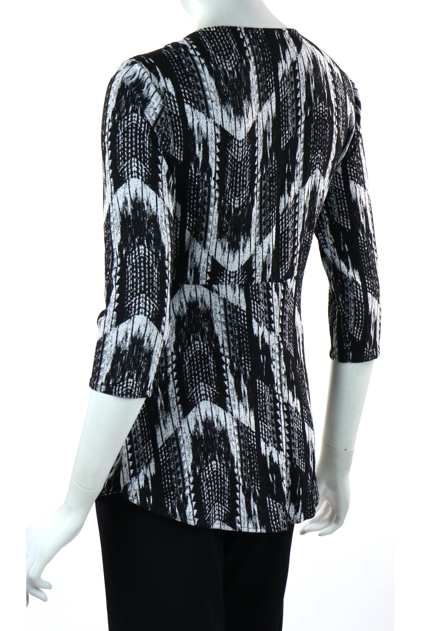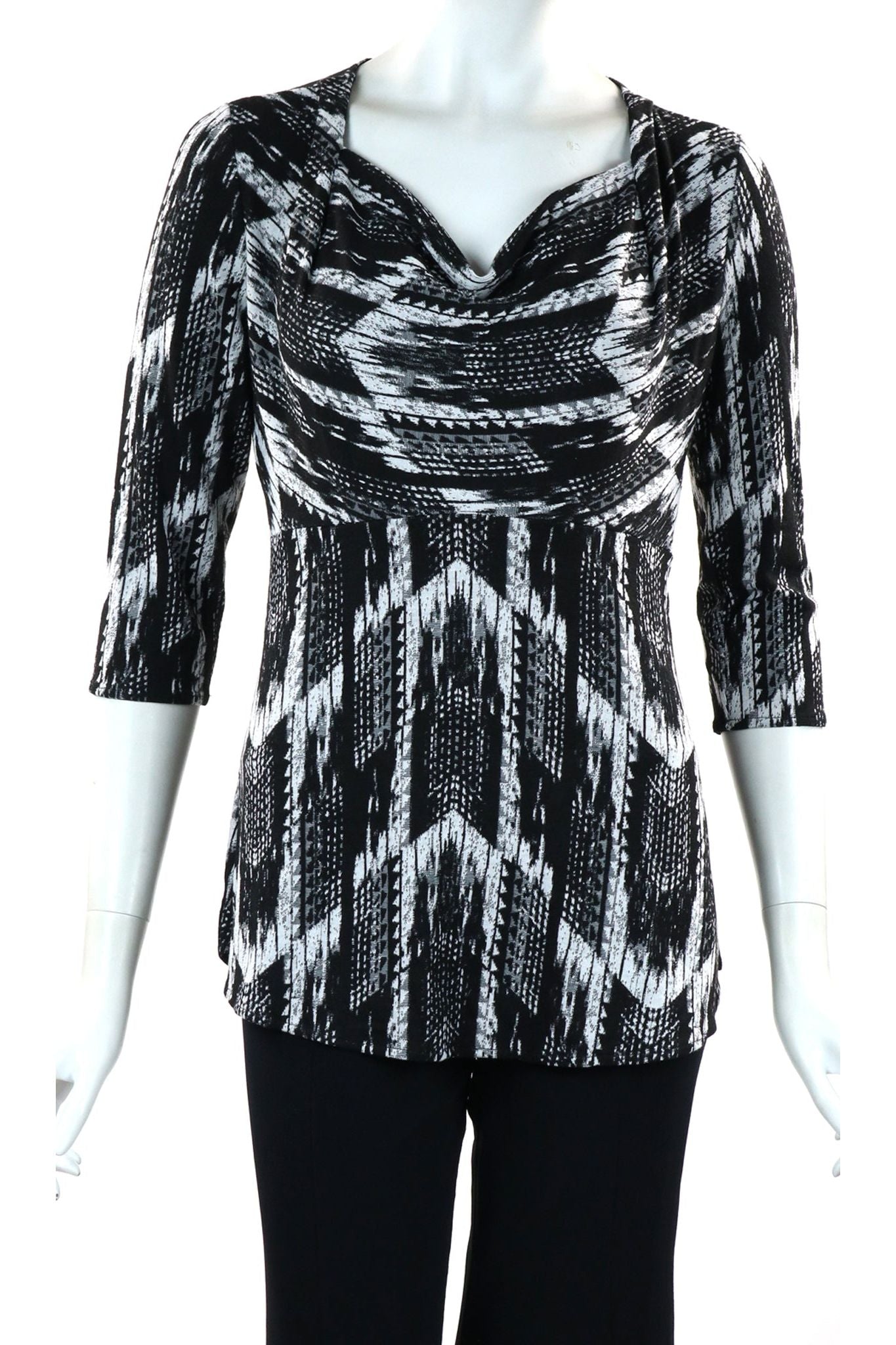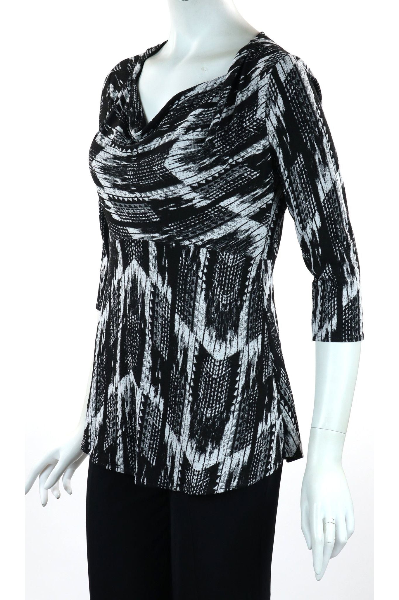 TRUDIE 3/4 Sleeves Empire Waist Cowl Neck Jacquard Top