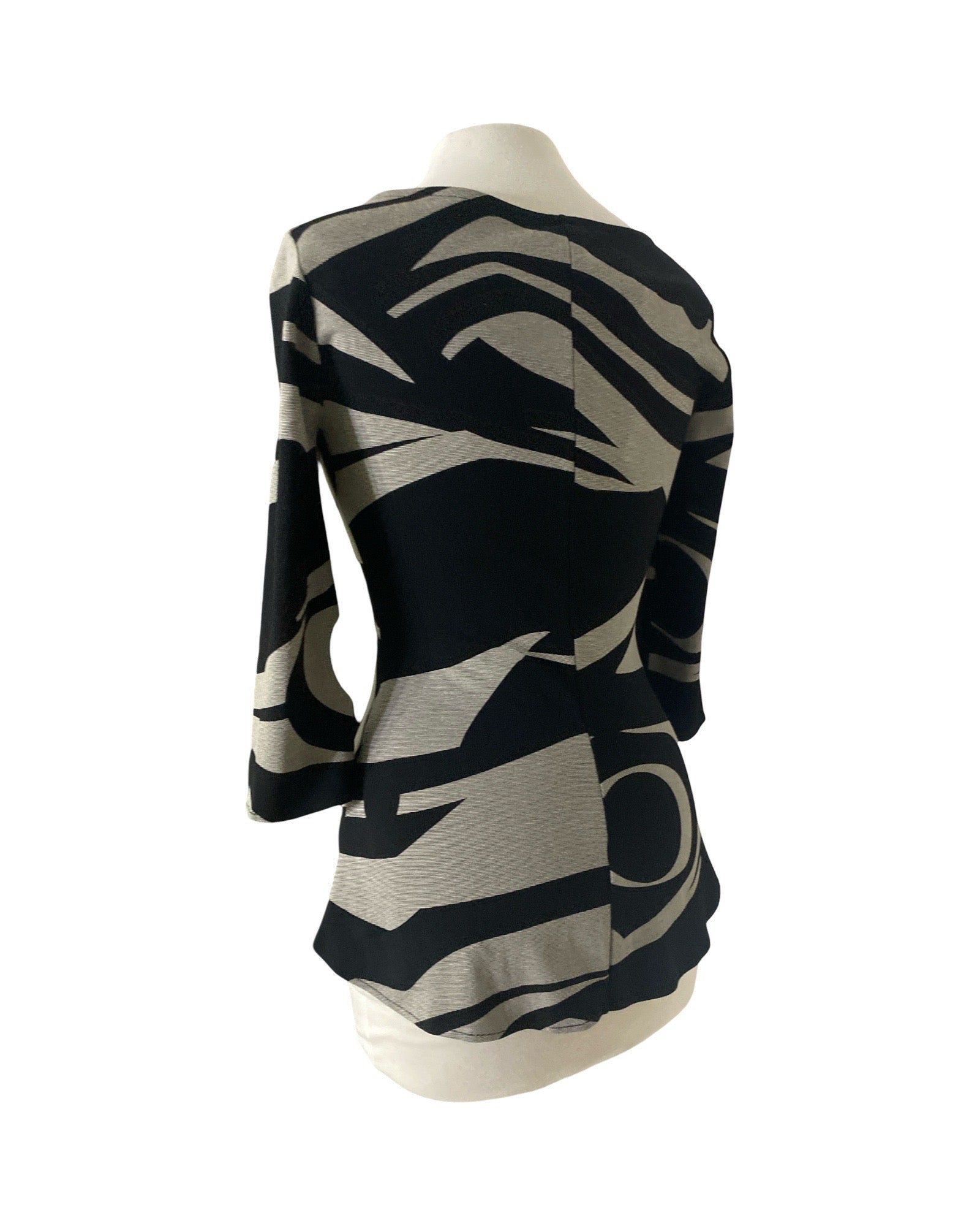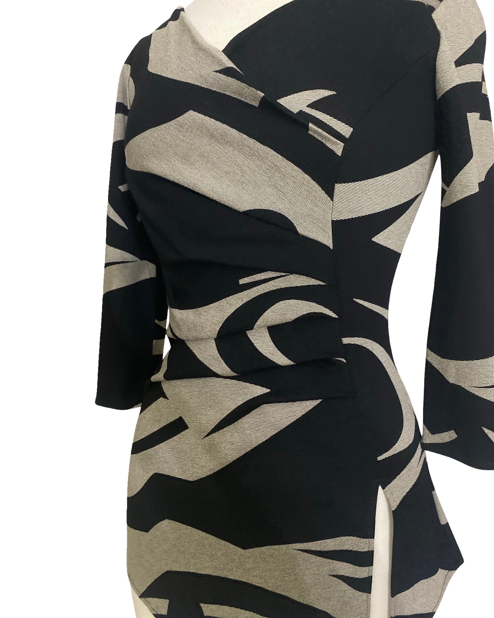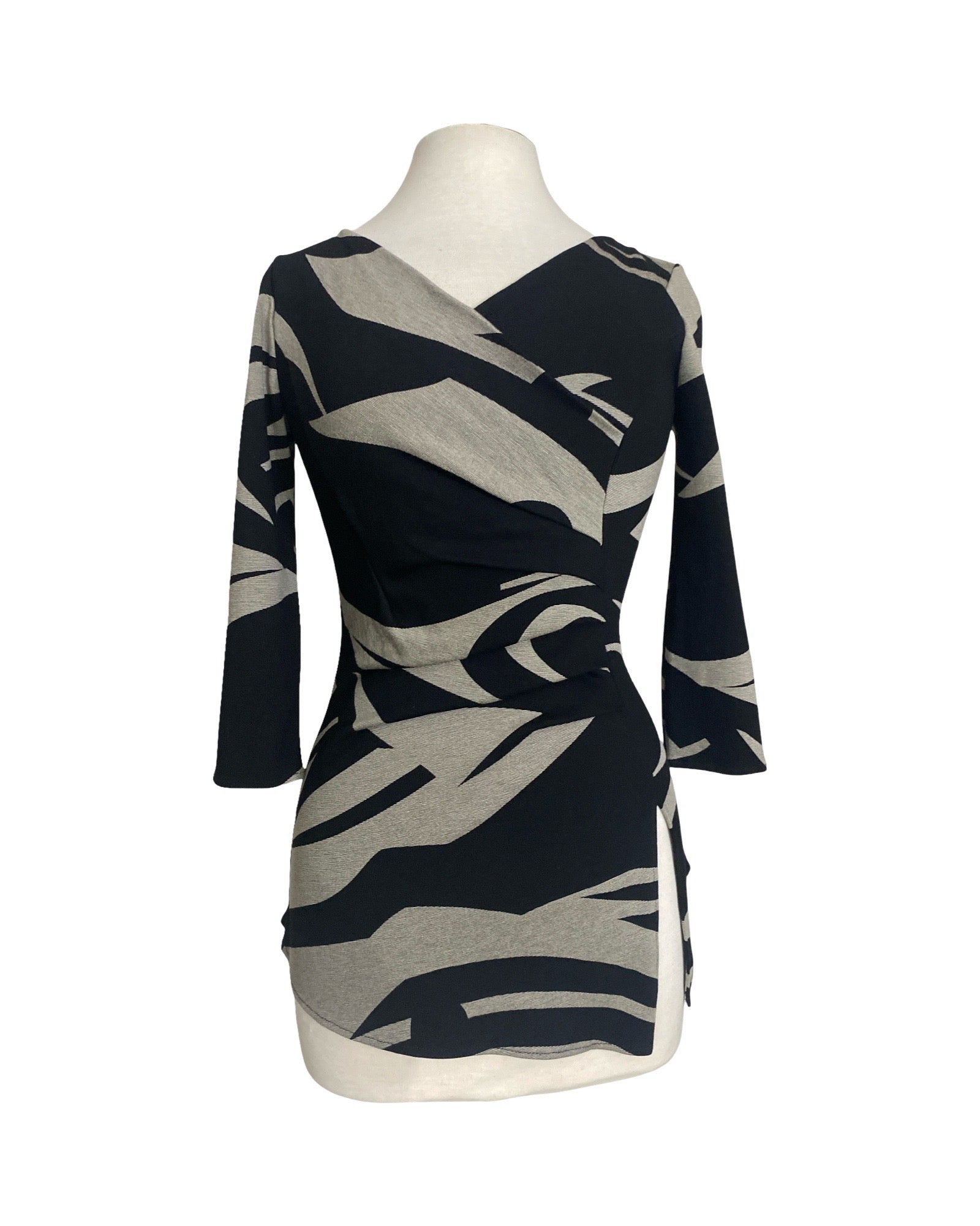 PETRA Crossover with Pleated Side 3/4 Sleeves Printed Stretch Jersey Top