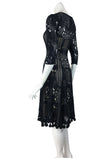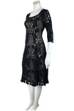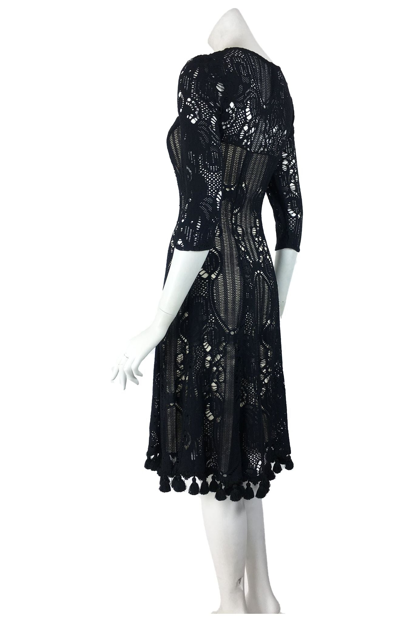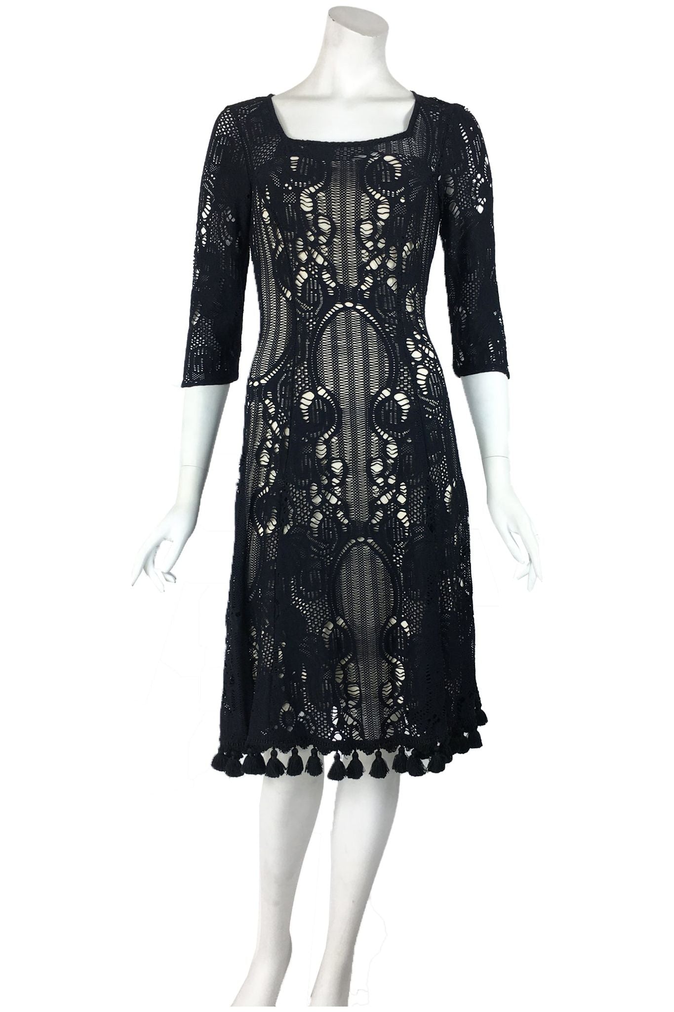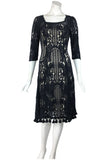 MURIEL Black Fit and Flare 3/4 Sleeves Crochet Lace Dress with Fringes