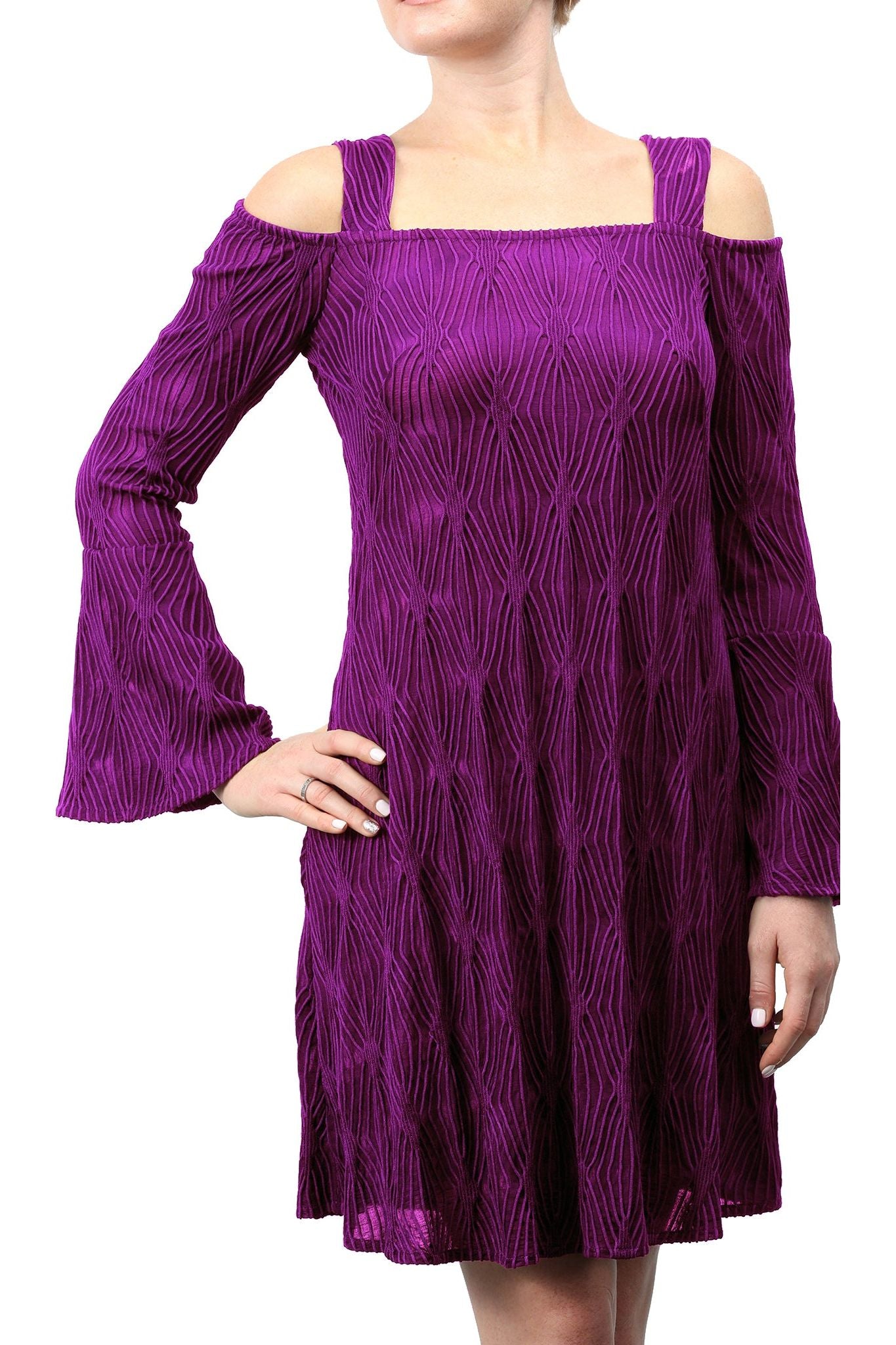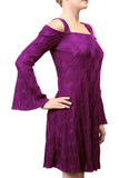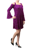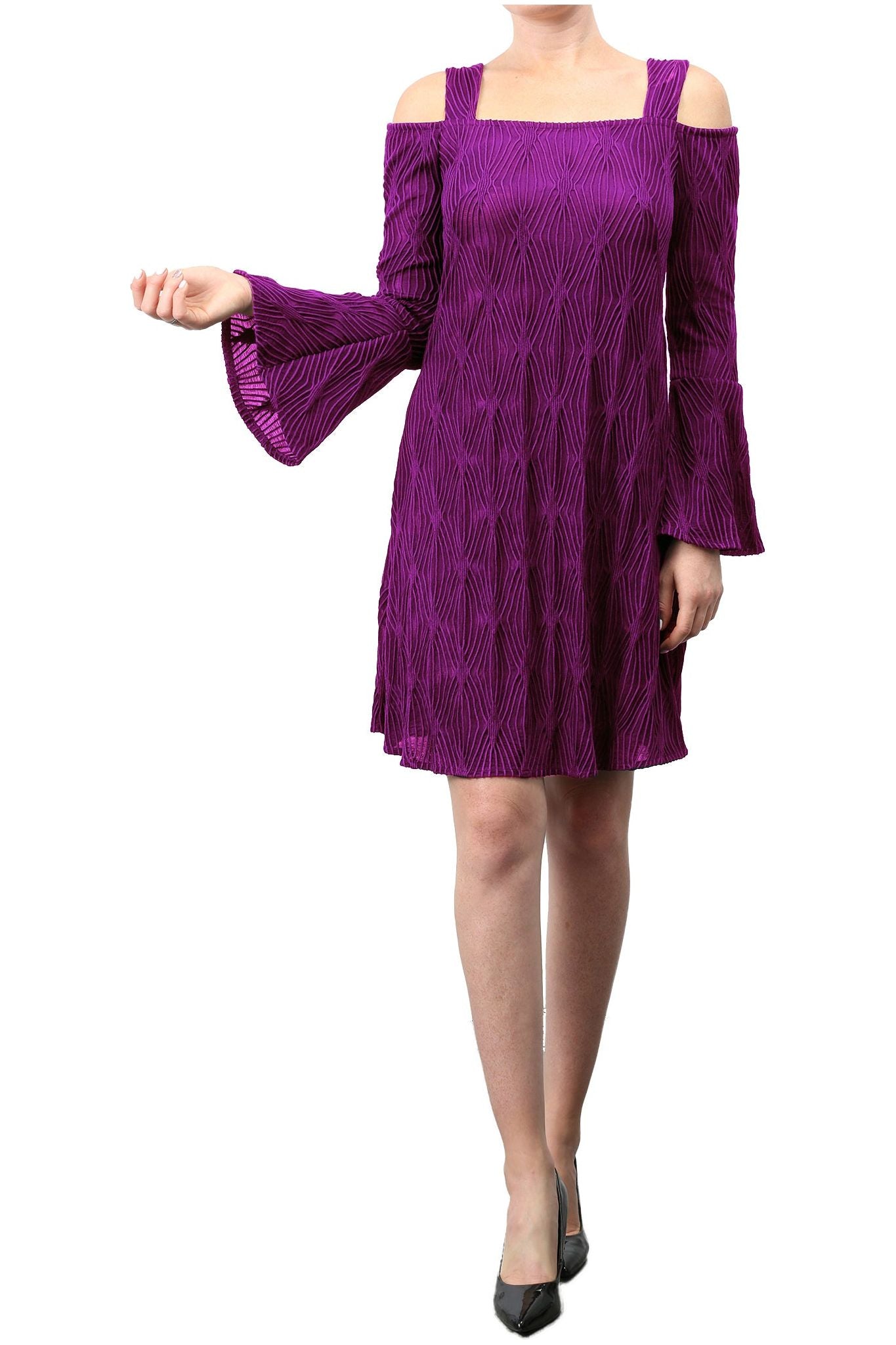 Beautiful magenta bell-sleeved dress with a cold shoulder neckline that can be worn to weddings, parties, concerts, dinners and any special occasions.