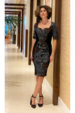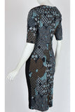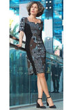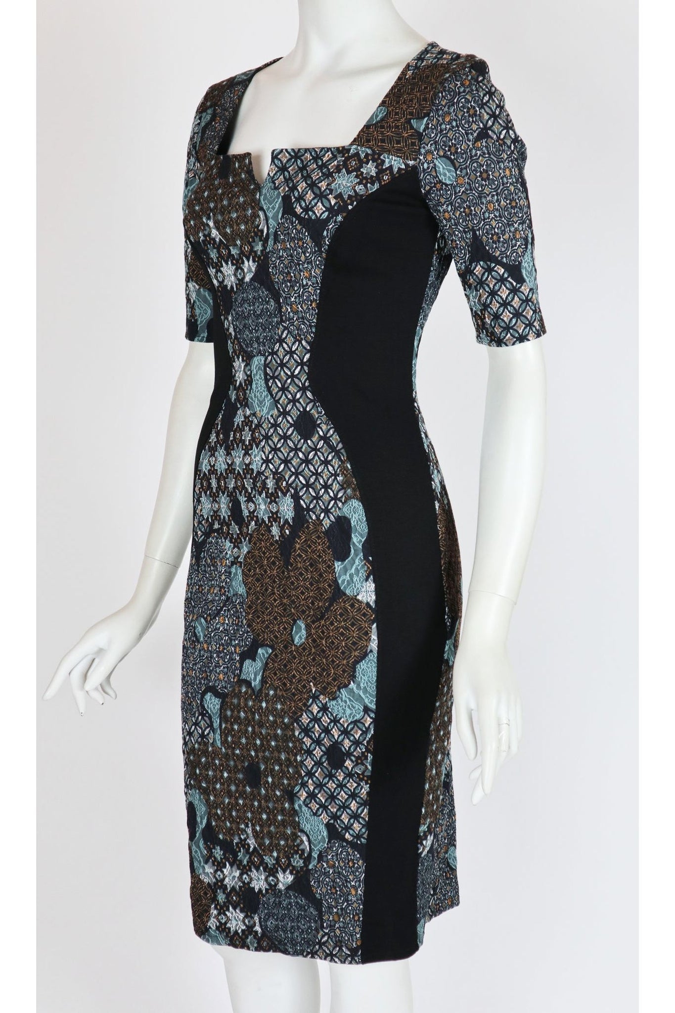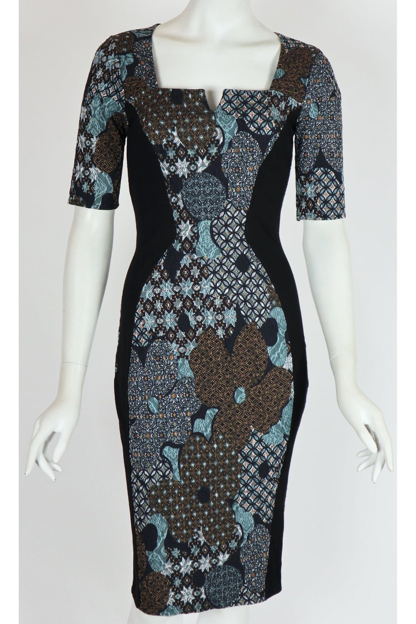 ARABESQUE Printed Jacquard Color Blocking Fitted Knee Length Dress