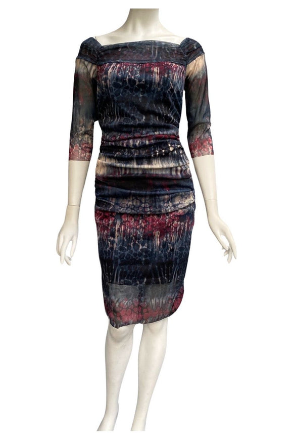 JESSICA Off-On Shoulder Ruched Sheer Mesh Long Sleeve Dress